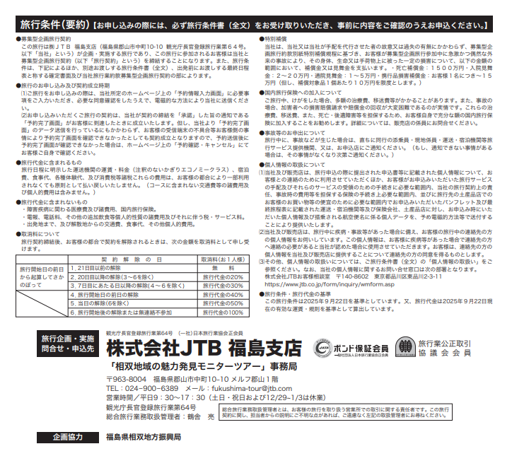 ◆旅行の企画・実施:株式会社JTB 福島支店